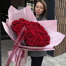 SHikarnij buket iz 25 krasnih kruzhevnih roz