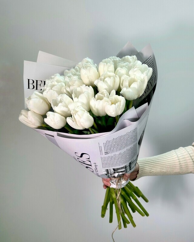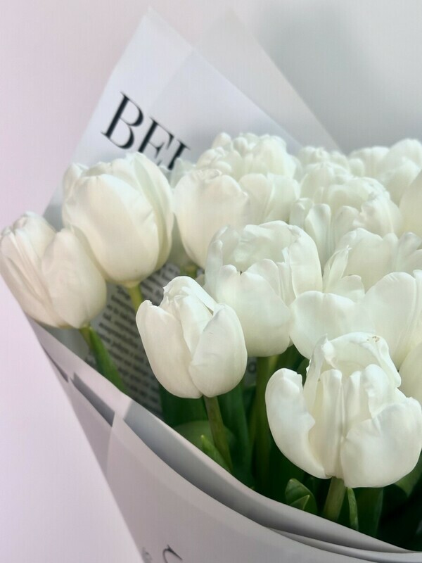 Prevoshodnij buket iz 25 belih tyul_panov v myagkoj matovoj upakovke — simvol chistoti, blagorodstva i garmonii. Etot roskoshnij duet nezhnih tcvetov v elegantnoj upakovke stanet ideal_nim podarkom dlya teh, kto tcenit utonchennost_ i iskrennie chuvstva. Ideal_no podojdet dlya schastlivih momentov i iskrennih priznanij!