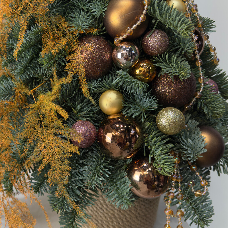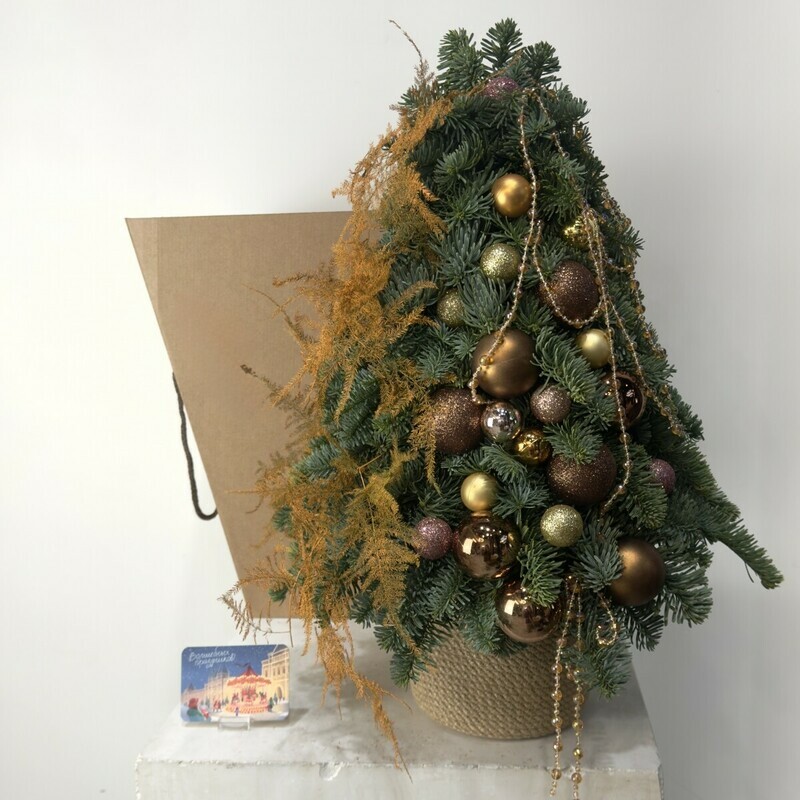 Nastol_naya elka ruchnoj raboti iz natural_noj datskoj pihti , ukrashennaya igrushkami, stanet prekrasnim podarkom. Ona napolnit dom prazdnichnoj atmosferoj i aromatom, dostaviv radost_ vashim blizkim i lyubimim lyudyam.