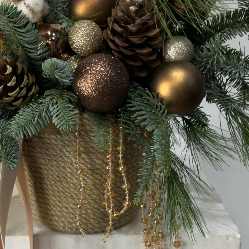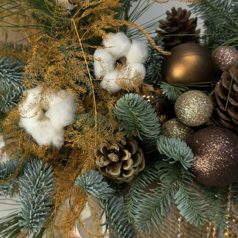 Avtorskaya kompozitciya iz zhivih vetok datskoj pihti Nobilis iz kollektcii «Svet zimnego yantarya », standart