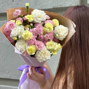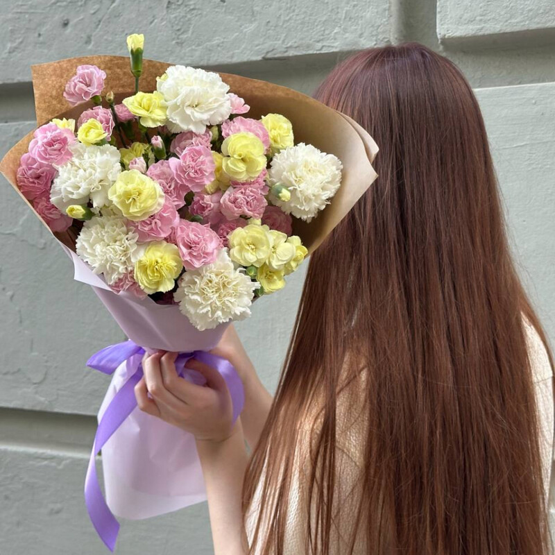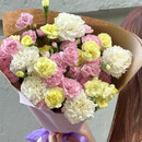 Miks diantusov — iziskannaya kompozitciya, v kotoroj garmonichno sochetayutsya gvozdika obichnaya i gvozdika kustovaya. Elegantnaya atlasnaya lenta podchyorkivaet krasotu tcvetov. Buket podojdyot dlya lyubogo sluchaya i poraduet poluchatelya svoej svezhest_yu i krasotoj.