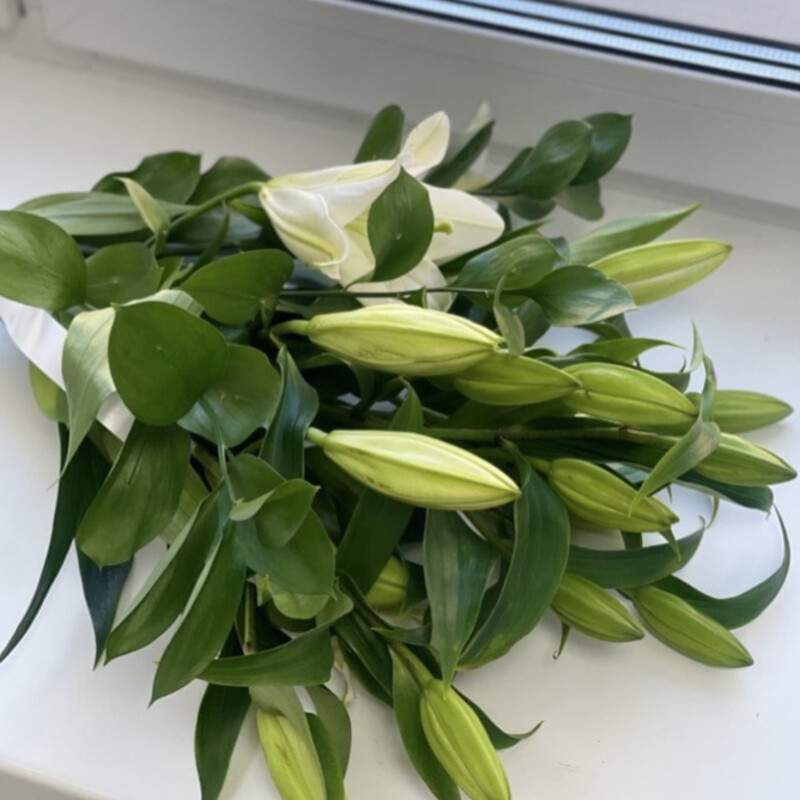 Buket iz stojkih lilij priyatnij prezent po lyubomu povodu.