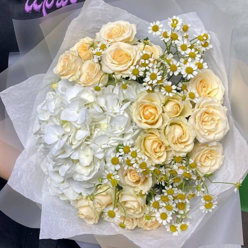 Buket v nezhnih tonah dlya nezhnogo pozdravleniya.