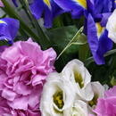 - Buket iz gvozdik irisov i eustom