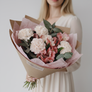 - Buket iz kremovih gvozdik i rozovoj al_stromerii