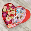 S lyubov_yu, korobka serdtce s kinderom i kustovimi rozami .