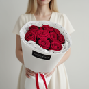 - Buket iz 9 krasnih roz v dizajnerskoj upakovke