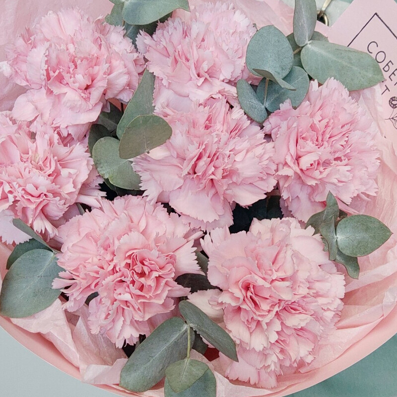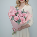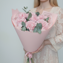 - Buket iz 7 rozovih gvozdik s evkaliptom