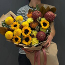 - Buket Avtorskij Solnishko hrizantemi podsolnuh