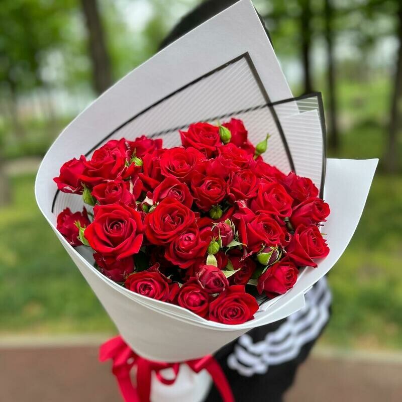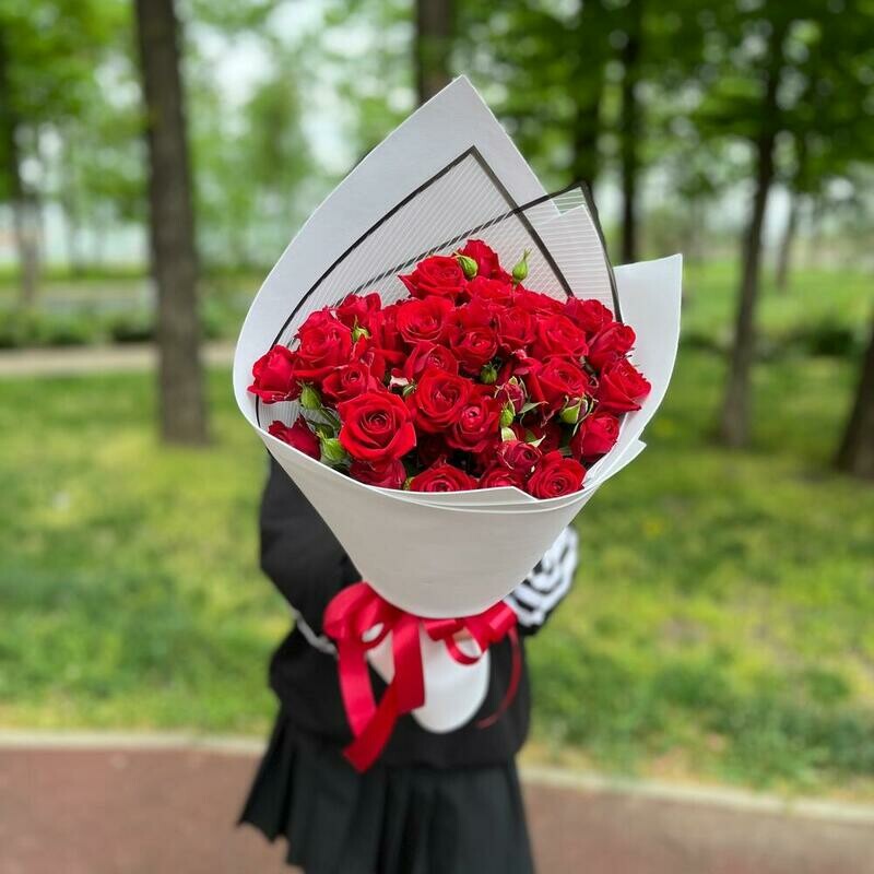 Buket iz 9 vetok Kustovoj krasnoj Rozi, standart