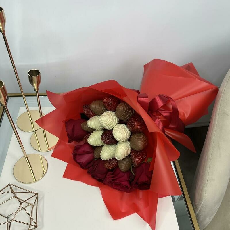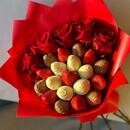 Buket iz Roz i klubniki V shokolade Lady in red, standart
