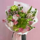Avtorskij buket «Elegiya vesni» s kustovimi redkimi ranunkulusami, pionami Sara Bernard, standart