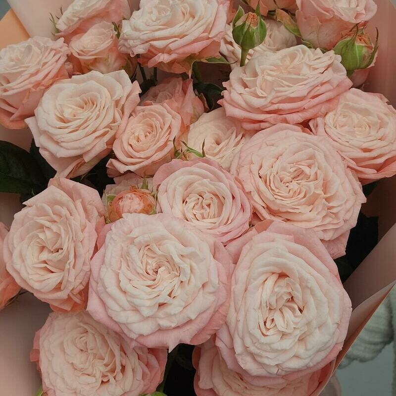 - Buket iz kustovih pionovidnih roz sorta Madam Bombastik