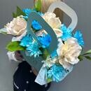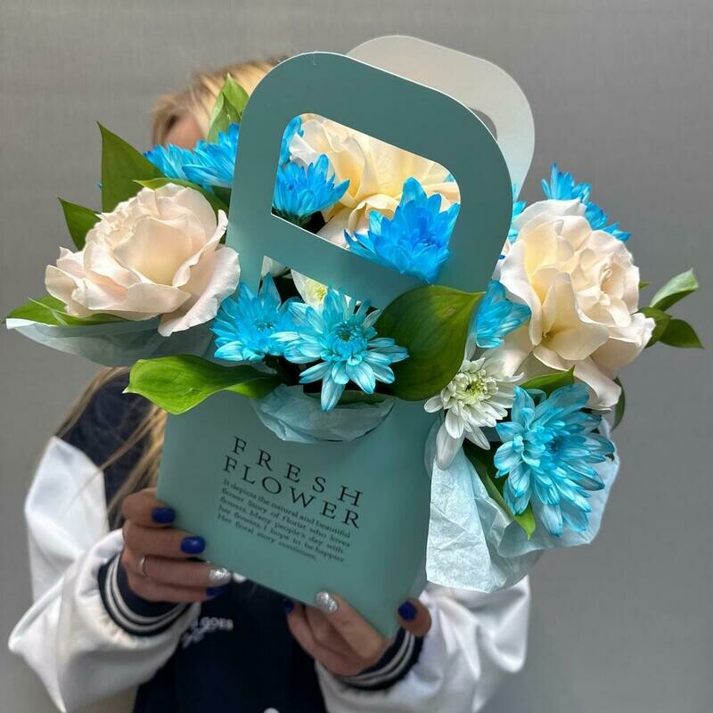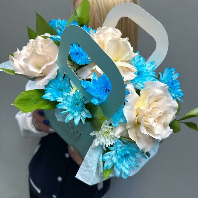- Frantcuzskie rozi s hrizantemoj v korobke