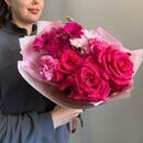 - YArkij malinovij buket. Buket «Fuksiya» frantcuzskie rozi, gerberi i diantusi