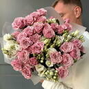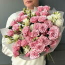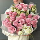 - Buket iz kustovoj rozi i eustomi