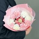 Buket iz klubniki v shokolade i trendovih diantusov