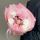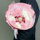 - Buket iz klubniki v shokolade i trendovih diantusov