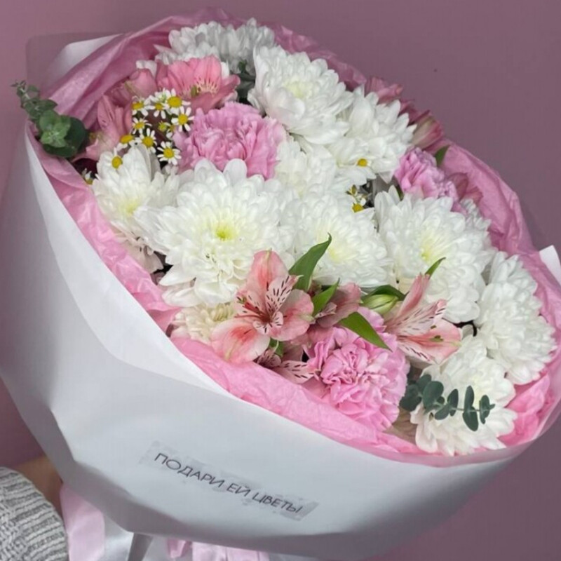 - Avtorskij buket s diantusami, al_stromeriej i hrizantemoj