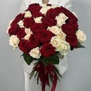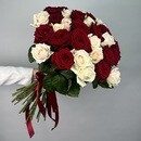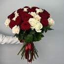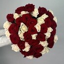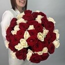 - Buket iz 49 kremovih i krasnih roz Rossiya 50 sm