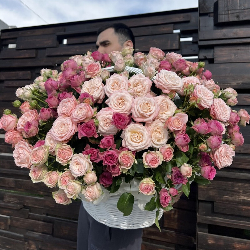Roskoshnaya korzina iz kustovih roz