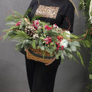 Kompozitciya iz aromatnih vetok eli nobilis, novogodnego dekora v stil_noj korzine dlya chudesnogo prazdnika