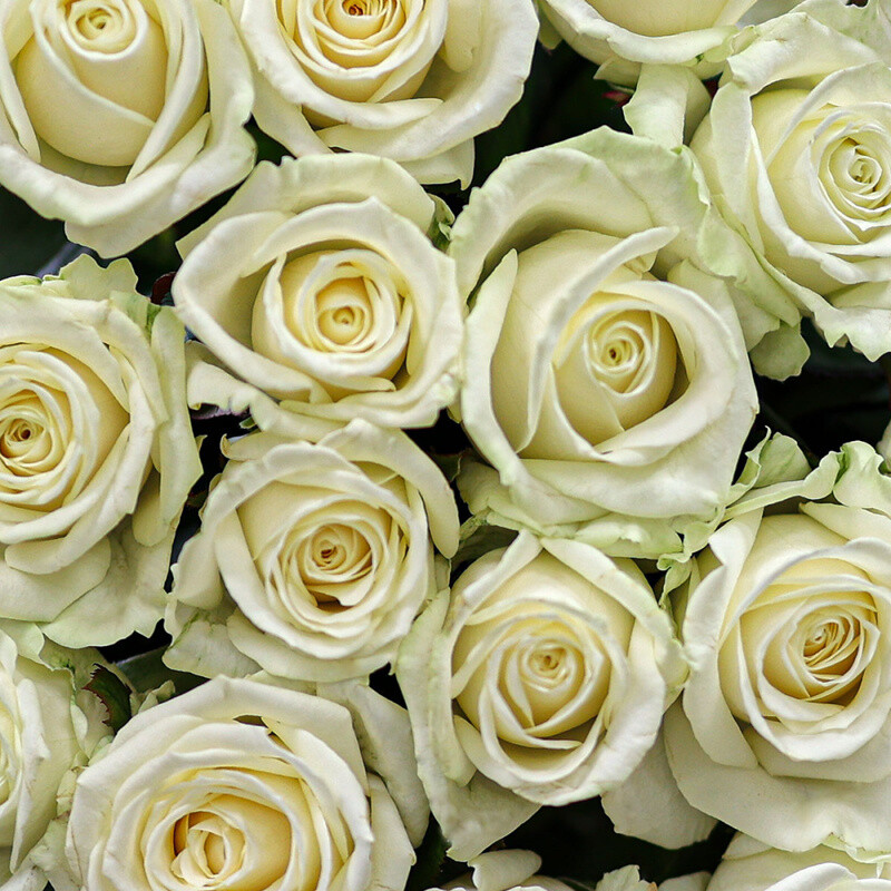 - Buket iz 13 belih roz (Rossiya) s lentoj 60 sm