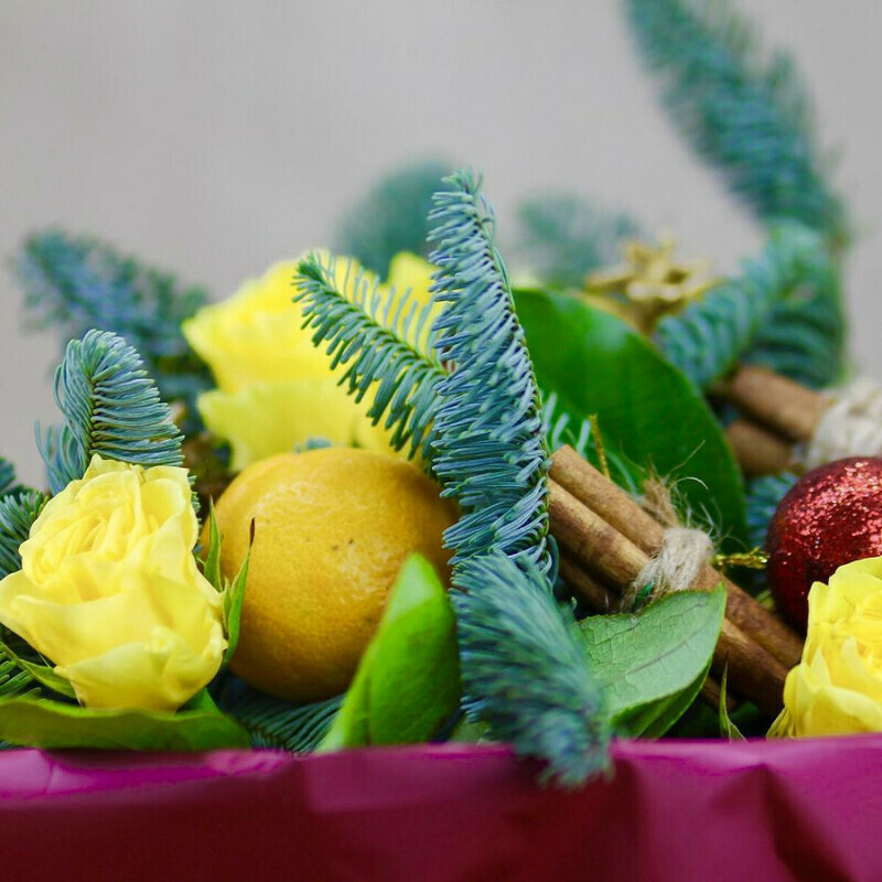 Zimnij buket s mandarinami i koritcej