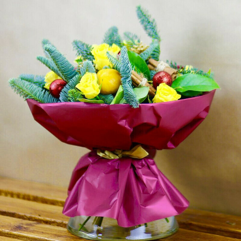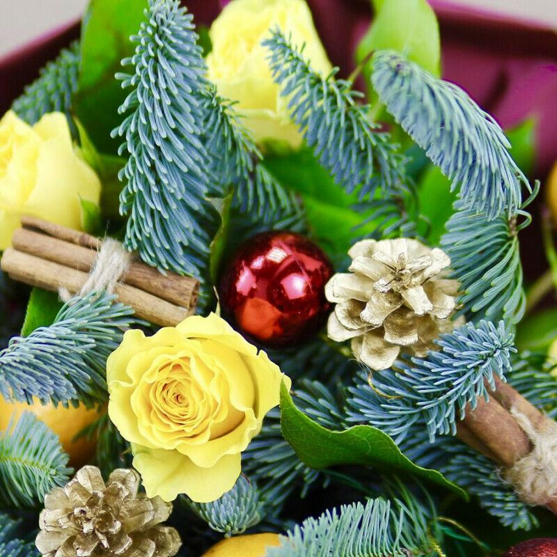 ZHeltie rozi i mandarini v zimnem stile, standart