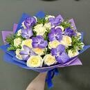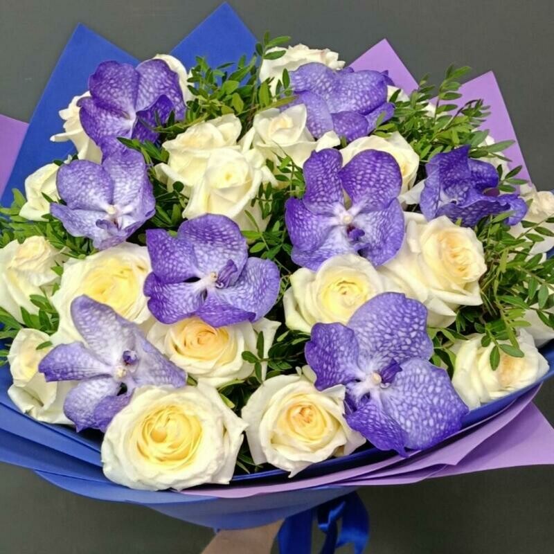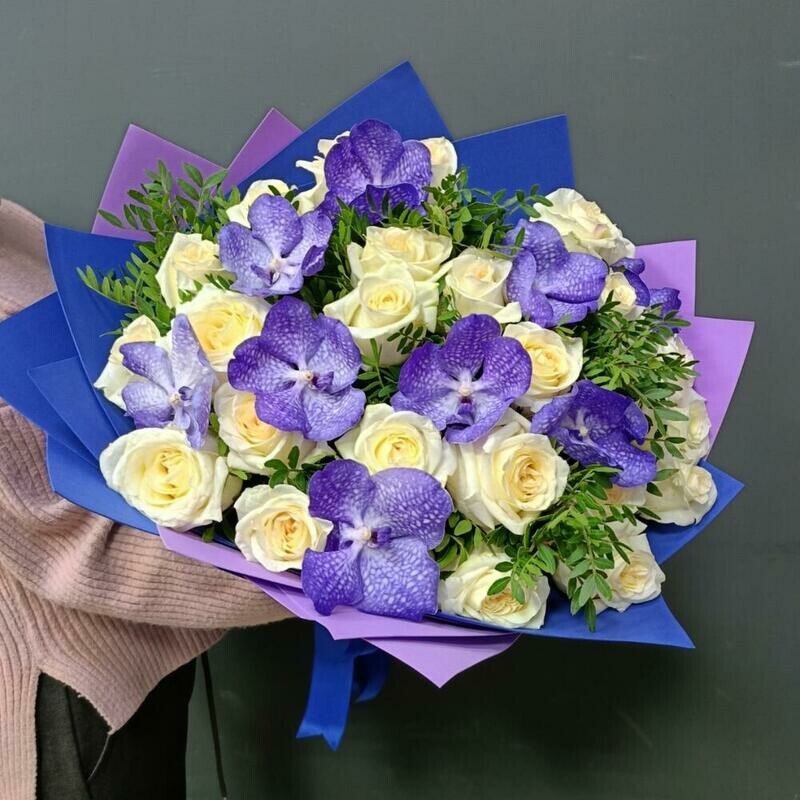 - SHikarnij buket s krupnoj pionovidnoj rozoj i orhideej VandaNachal_niku