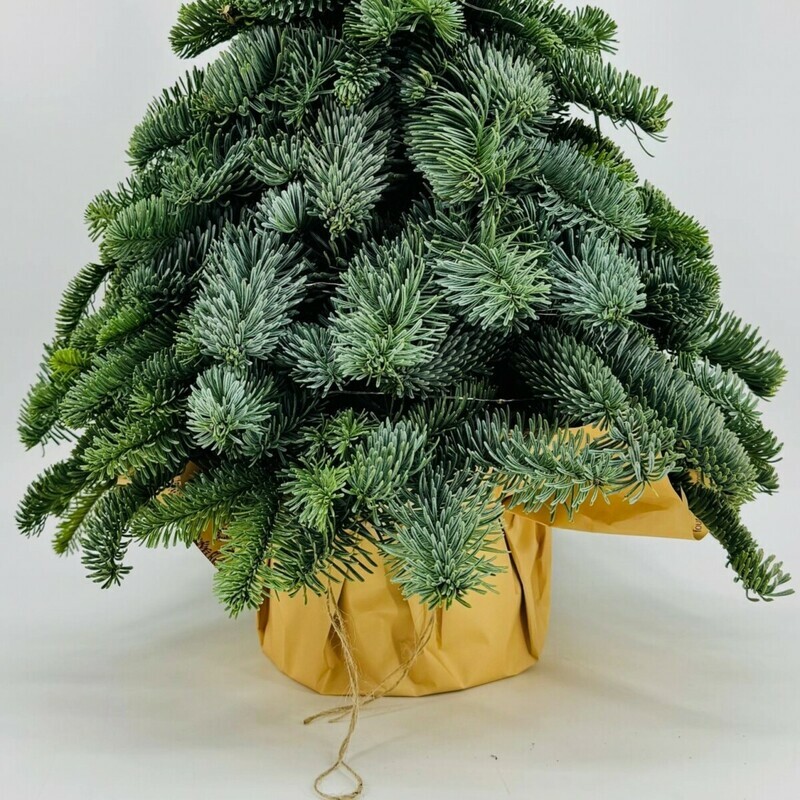 YOlochka 60 sm ruchnaya rabota iz vetok datskoj eli nobilis so svetodiodami
