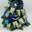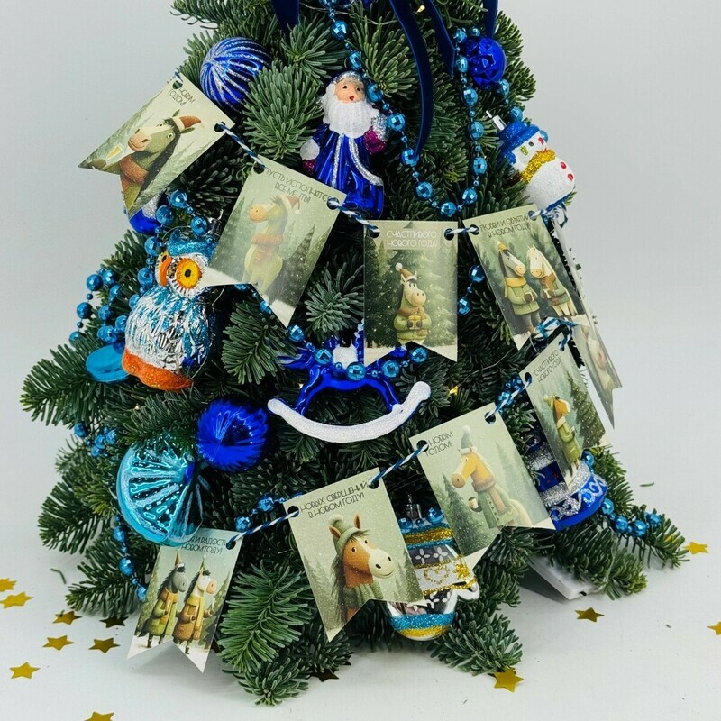 Novogodnyaya yolochka ruchnaya rabota 40 sm iz vetok zhivoj hvoi nobilis s girlyandoj iz bumazhnih flazhkov, standart