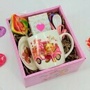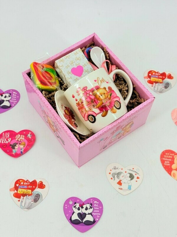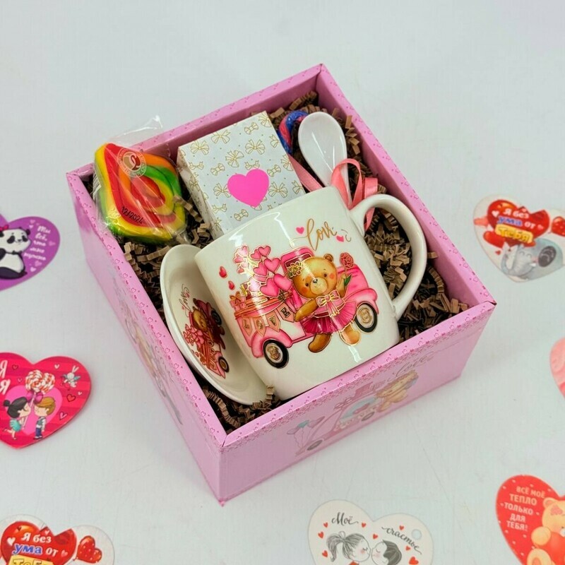 Podarochnij chajnij nabor s karamel_kami i keramicheskoj kruzhkoj s blyudtcem i lozhkoj, standart