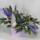 Inter_ernaya kompozitciya iz hvoi nobilis s gnomom v derevyannom yashike, standart