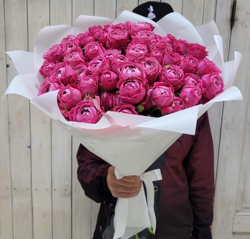 ZHelaete udivit_ blizkogo cheloveka? Hochetsya chtobi glaza siyali ot schast_ya? Ob_yomnij buket iz pionovidnih roz -eto imenno to, chto nuzhno! Vash blizkij chelovek budet v vostorge! Takoj podarok podojdyot kak podarok na Den_ Rozhdeniya, na svidanie, v kachestve izvineniya ili prosto tak bez povoda, chtobi podnyat_ nastroenie blizkomu cheloveku. Roskoshnij podarok iz aromatnih tcvetov proizvedyot yarkoe vpechatlenie i sdelaet podarok nezabivaemim. Poradujte podarkom iz aromatnih, svezhih tcvetov pryamo sejchas! Pochemu imenno mi? -Garantiruem visokoe kachestvo produktcii. -Besplatnaya kruglosutochnaya dostavka. -Vezhlivie harizmatichnie kur_eri, kotorie obucheni obsheniyu s poluchatelem podarka. Vazhno! TCveti stoyat v floristicheskoj gubke propitannoj vodoj. Podlivat_ vodu nuzhno odin raz v 2 dnya po 100 ml. Prostoyat bolee 2h nedel_ pri dolzhnom uhode: Ne stavit_ ryadom s batareej Ne pereohlazhdat_ tcveti Podlivat_ vodu