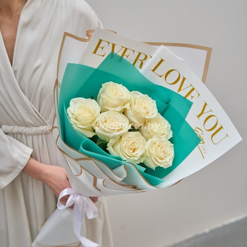 7 Ecuadorian White Roses 60 cm, 7 stems