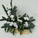 Zimnij buket v derevyannom yashike