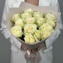 - Buket iz 15 belih roz Keniya 40 sm