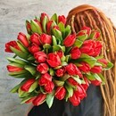 Bol_shoj buket iz 45 krasnih tyul_panov. TCveti krasnie tyul_pani na 8 marta, standart