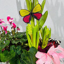 Kompozitciya pervotcvetov v korzinke kashpo. Tyul_pan, tciklamen, giatcint
