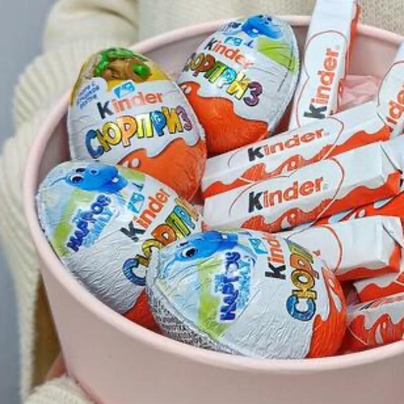 Nabor «Kinder Surprise» — ideal_nij podarok dlya vseh vozrastov. Vklyuchaet v sebya 4 yajtca Kinder Surprise, shokolad Kinder i Kinder Delice. Podhodit dlya lyubogo povoda i poraduet kak detej, tak i vzroslih.