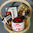 «Sladkaya korzina» — iziskannij nabor dlya tcenitelej sladostej. V sostav vhodyat korzina, tort Rafaello, konfeti Ferrero Rocher i Mersi. Ideal_nij podarok dlya lyubogo sluchaya: prazdnika, svidaniya ili prosto dlya podnyatiya nastroeniya. Podhodit dlya vseh bez isklyucheniya.