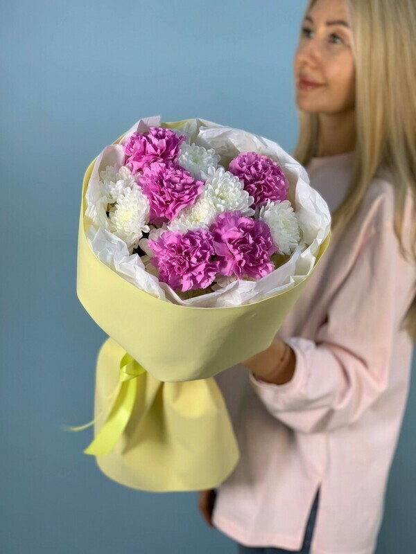 - Buket s diantusami i hrizantemoj