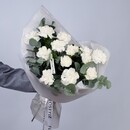 Sostav: Diantus White - 13 sht, Evkalipt - 0,5 sht, Fistashka - 2 sht, Tish_yu belaya, Matovaya plenka belaya ushkami