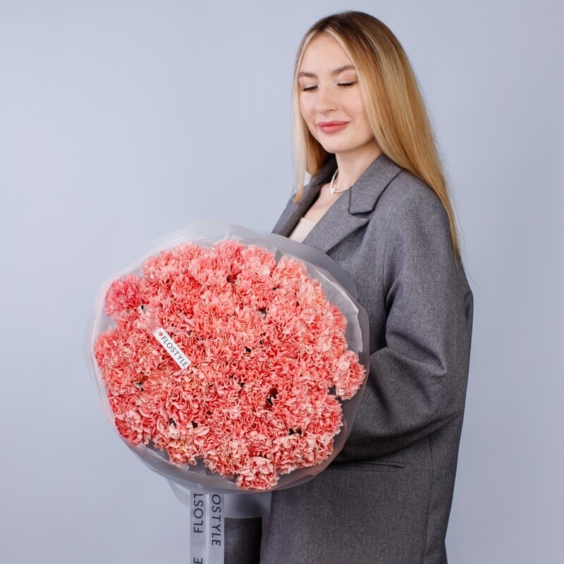 Roskoshnij monobuket iz 51 vetki mahrovogo diantusa nezhnogo rozovogo ottenka. Etot tcvetok — simvol obayaniya i iskrennih chuvstv, a nejtral_naya upakovka delaet ego stil_nim i samodostatochnim.