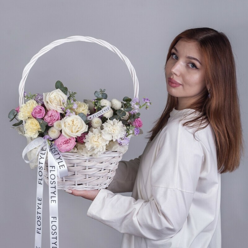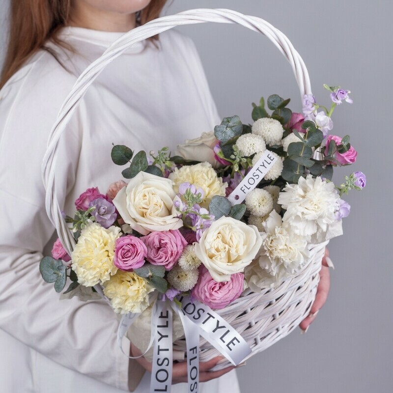 Belaya korzina s pionovidnimi rozami ot FLOSTYLE — elegantnaya kompozitciya dlya osobogo momenta. Nezhnie pionovidnie rozi v okruzhenii kustovoj rozi, hrizantemi, vozdushnih diantusov, dushistoj mattioli i svezhego evkalipta sozdayut nepovtorimij buket v belosnezhnoj korzine. Ideal_nij podarok na 8 Marta, 14 fevralya, den_ rozhdeniya, yubilej, godovshinu svad_bi, pomolvku ili rozhdenie malisha. Prekrasnij vibor dlya nevesti, mami ili vozlyublennoj — belij tcvet simvoliziruet chistotu chuvstv i iskrennost_. Korzina ne trebuet vazi i dolgo sohranyaet svezhest_. Stil_noe oformlenie s atlasnoj lentoj podcherkivaet torzhestvennost_ momenta. Svezhie tcveti s dostavkoj po Novosibirsku i oblasti. Zakazhite etu nezhnuyu kompozitciyu v FLOSTYLE pryamo sejchas!