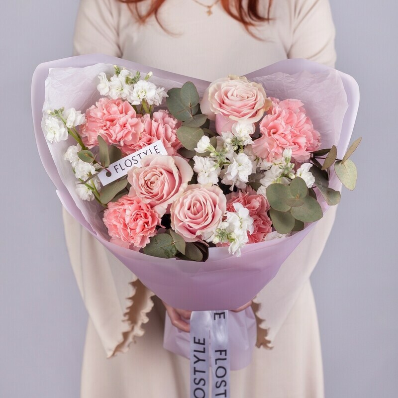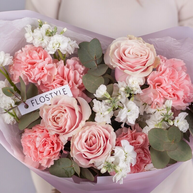 Sbornij buket iz sortovih roz, nezhnih diantusov i aromatnoj beloj mattioli ot FLOSTYLE. Iziskannaya floristicheskaya kompozitciya dlya tcenitelej blagorodnih sochetanij: korolevskie rozi premial_nih sortov, vozdushnie diantusi i dushistaya mattiola sozdayut nepovtorimij buket s harakterom. Ideal_nij podarok na 8 Marta, 14 fevralya, den_ rozhdeniya, godovshinu svad_bi ili yubilej. Prekrasnij vibor dlya mami, zheni, sestri ili vozlyublennoj, kotoraya otcenit utonchennij vkus. Belaya mattiola dobavlyaet ne tol_ko nezhnosti, no i volshebnij aromat, napolnyayushij komnatu. Svezhie tcveti s dostavkoj po Novosibirsku i oblasti. Podarite etu simfoniyu vkusa s FLOSTYLE — zakazivajte pryamo sejchas!