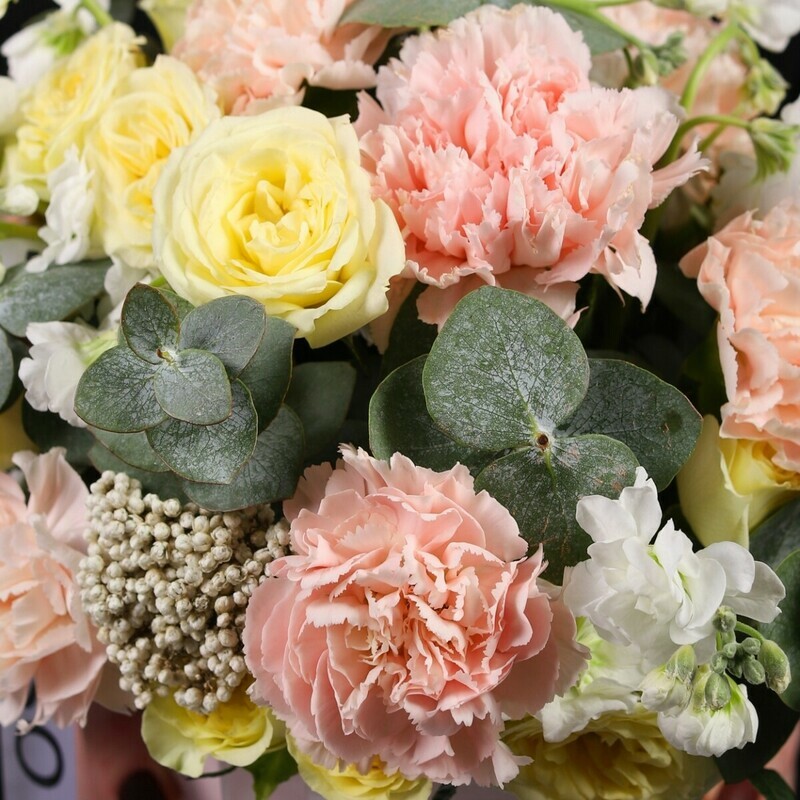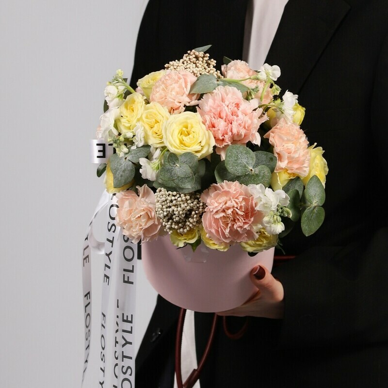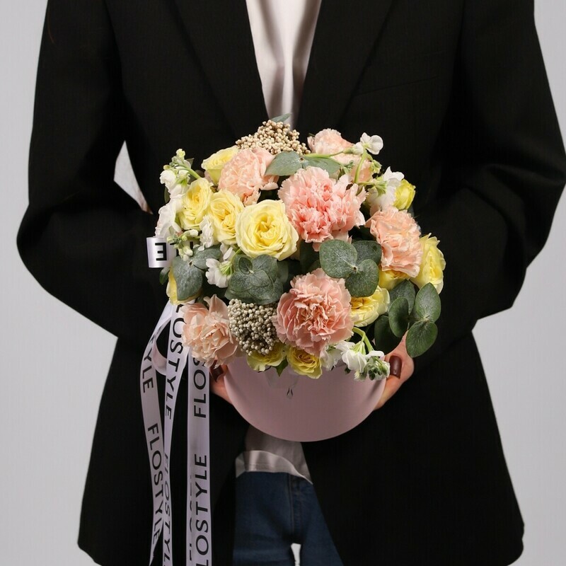 Sbornij buket v shlyapnoj korobke s kustovimi zheltimi rozami ot FLOSTYLE. Solnechnaya, teplaya kompozitciya dlya samih svetlih pozdravlenij: yarkie kustovie zheltie rozi, nezhnie persikovie diantusi, dushistaya belaya mattiola i svezhij evkalipt v elegantnoj shlyapnoj korobke. Korobka ne trebuet vazi i stanovitsya stil_nim ukrasheniem lyubogo inter_era. Ideal_nij podarok na 8 Marta, den_ rozhdeniya, yubilej, novosel_e ili syurpriz bez povoda. ZHeltie rozi simvoliziruyut radost_, druzhbu i solnechnoe nastroenie. Mattiola napolnyaet komnatu volshebnim aromatom. Svezhie tcveti s dostavkoj po Novosibirsku i oblasti. Zakazhite etot solnechnij buket v FLOSTYLE pryamo sejchas!