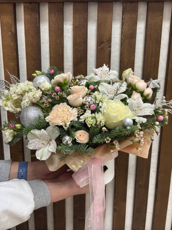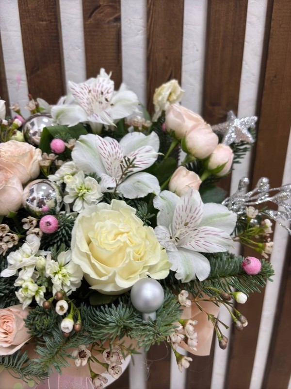 - Novogodnyaya kompozitciya v shlyapnoj korobke