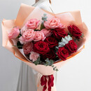 Miks rozovih i krasnih roz s gvozdikoj, miks rozovih i krasnih roz s gvozdikoj